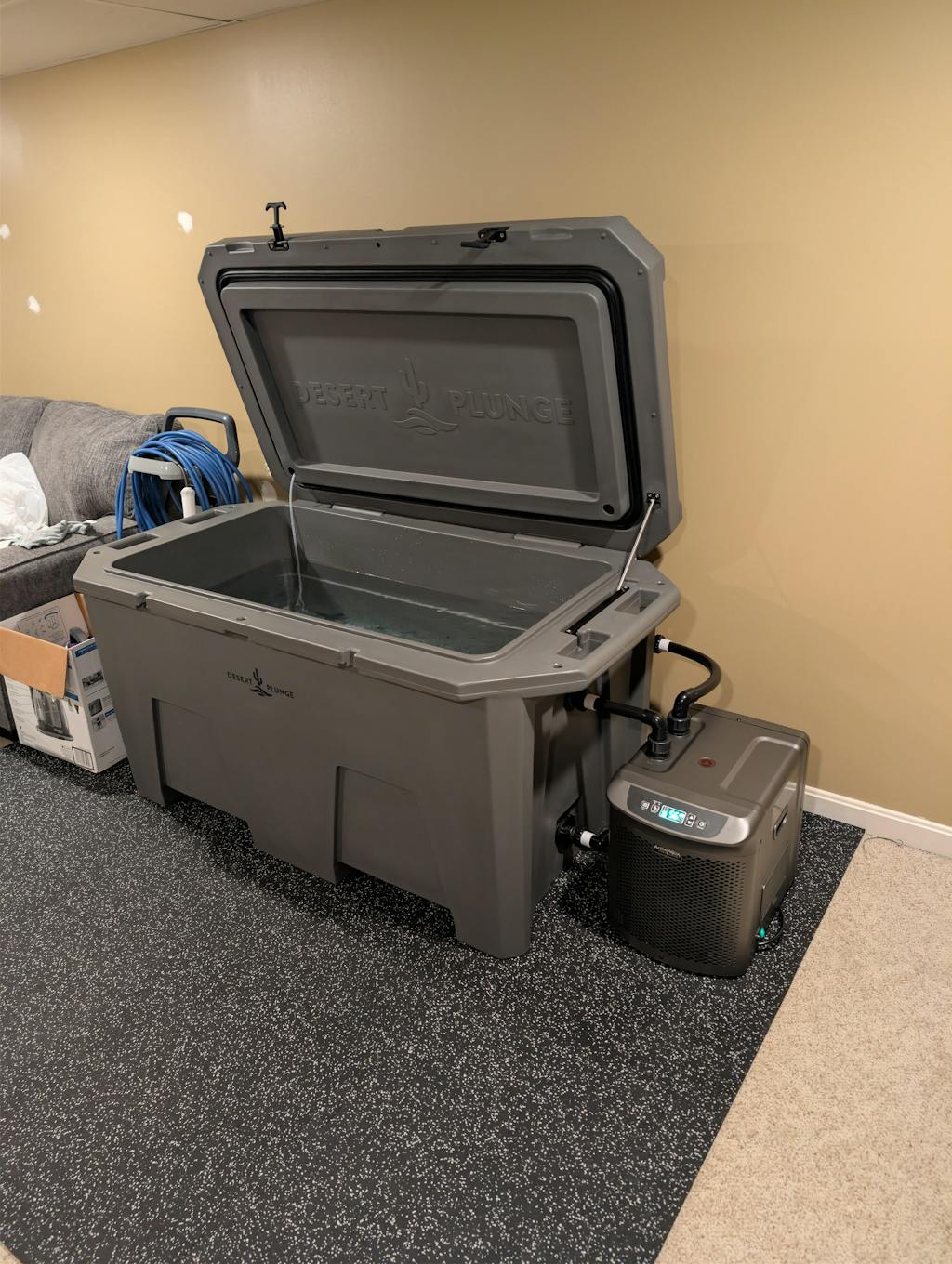 The Desert Plunge Team puts together the most complete and functional cold plunge system on the market. Don't fall for the hype of the all in one units or the other brands where things will break, follow up service vanishes, or you are left with proprietary parts that aren't user friendly to service. The exclusive tub is the perfect size and the insulation and chiller are perfectly paired for the setup. I have been using it for two weeks now and couldn't be happier!